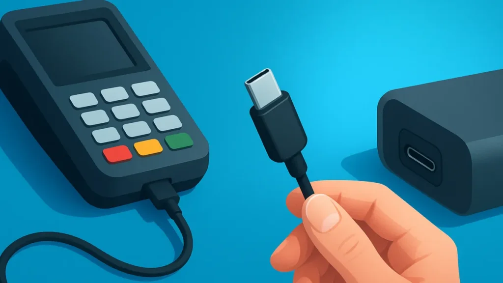 Soluções práticas para reduzir interrupções de venda usando o Guia das Maquininhas com Entrada USB-C e carregadores rápidos.