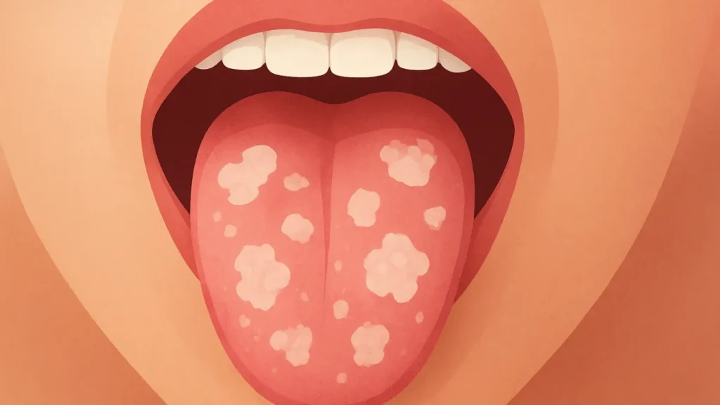 Algumas infecções podem causar alterações na boca e na língua, incluindo áreas claras, feridas ou verruguinhas. Como o aspecto varia muito, não dá para fechar diagnóstico só olhando em casa.