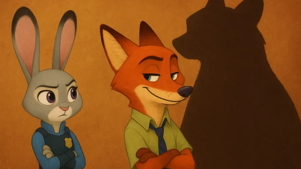 Judy Hopps, uma coelha policial, representa quem tenta mudar o sistema. Nick Wilde, a raposa, traz a experiência de quem foi rotulado desde cedo. A dinâmica entre os dois ajuda a mostrar como confiança e diálogo podem desmontar estereótipos.